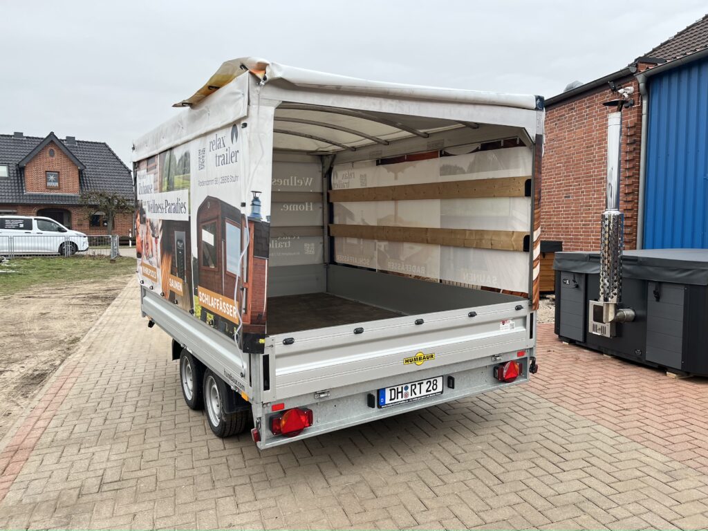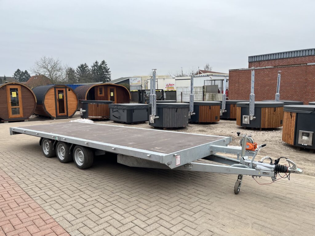 Die mobile Sauna wiegt ca. 1500 kg, für den Transport des Trailers wird ein Führerschein Klasse BE benötigt sowie das passende Zugfahrzeug. Das mobile Badefass wiegt ca. 600 kg und der Kulba Miniwohnwagen rund 750 kg. Für den Transport reicht in beiden Fällen der Führerschein Klasse B aus.
