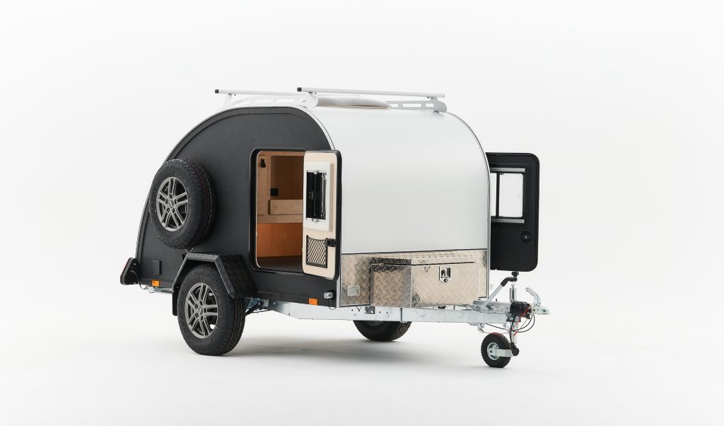 Das Modell “Rebel” ist ein veränderter KULBA-Teardrop-Trailer, der auch abseits der Straßen gefahren werden kann. Die äußeren Seitenwände des Rebels sind mit wetter- und kratzfestem Polyurethan (Line-X) beschichtet. Die Achse mit wasserdichten Radlagern ist mit 15-Zoll-Leichtmetallrädern und All-Terrain-Reifen ausgestattet. Die begehbaren Aluminiumkotflügel erzeugen den klassischen Offroad-Look.