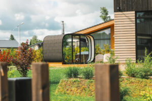 - Glastür und Fensterfront – schwarz, statt verspiegelt
