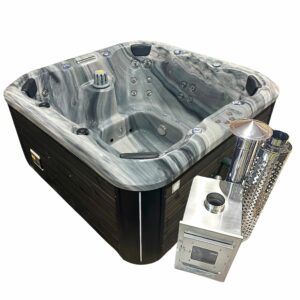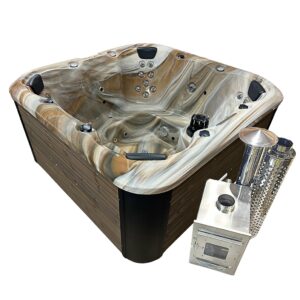 - LED-Beleuchtung (mehrfarbig) – 8 mini LED’s, 1 große LED-Lampe, 1 Wasserfall mit Beleuchtung, 3 leuchtende Getränkehalter